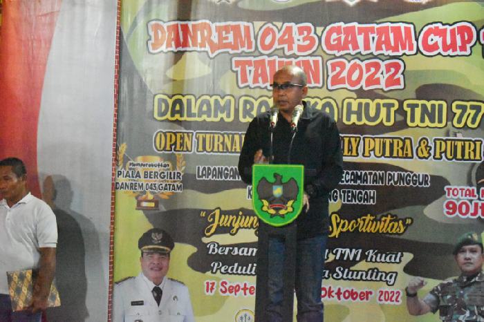 Turnament Bola Volly Danrem 043/Gatam Cup 1, digelar di Kodim 0411/KM dan dilaksanakan di lapangan Merdeka Astomulyo Kec Punggur Kabupaten Lampung Tengah, selama 20 hari dari 17 September s/d 8 Oktober 2022, di ikuti oleh 32 Tim Putra dan 16 Tim Putri, Sabtu (17/09/2022).