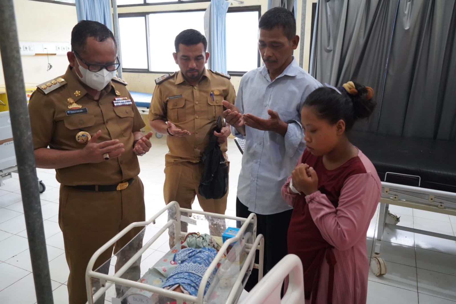 Penjabat Bupati Mesuji Sulpakar menyambangi bayi perempuan pasangan Tarno dan Maysaroh di rumah sakit pukul 16.30 Wib, Senin Petang (31/10/2022).