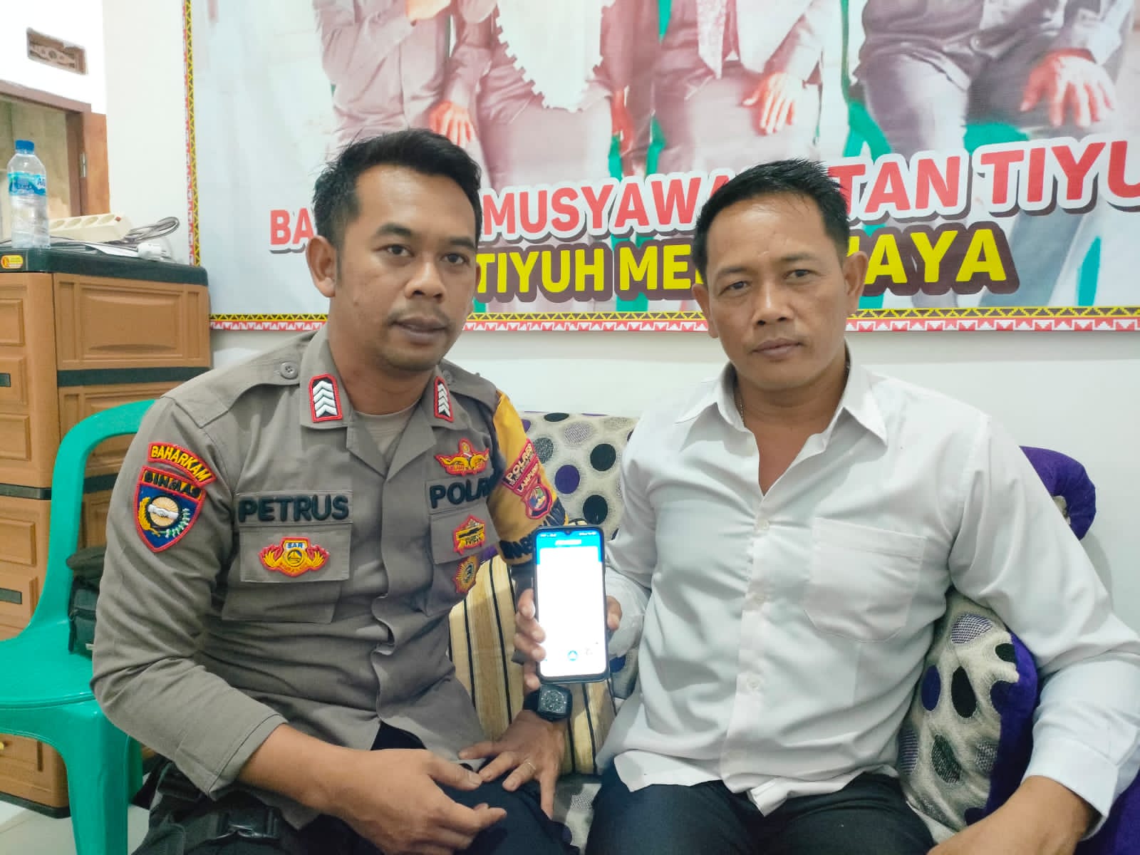 Bhabinkamtibmas Polsek Gunung Agung Polres Tulang Bawang Barat Polda Lampung Bripka Petrus dan Bripka Maulana melakukan sosialisasi aplikasi Super App Presisi kepada masyarakat, Rabu (7/12/2022). Pagi