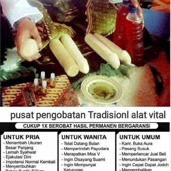 Kami memberikan jaminan pengobatan kejantanan pria tanpa efek samping, tidak membuat ketergantungan, tanpa bahan kimia, tetapi akan membuat pasangan Anda bahagia dan harmonis. Gratis konsultasi