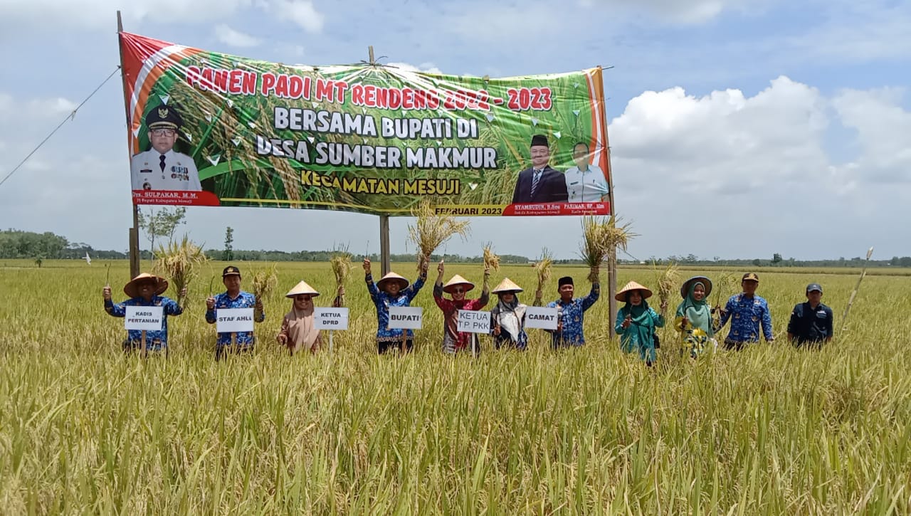 Mesuji Lampung,(Topikindonesia.Id)- Pejabat Bupati Mesuji Drs.Sulpakar, MM didampingi ketua TP PKK Kabupaten Mesuji Pori Karlia Sulpakar, Ketua DPRD Kabupaten Mesuji, Asisten Bidang Administrasi dan Pemerintahan Umum Kabupaten Mesuji, Staf Ahli Bupati, Kepala Dinas Pertanian Kabupaten Mesuji, Kepala Bappelitbangda Kabupaten Mesuji, Kepala Dinas Ketahanan Pangan Kabupaten Mesuji, Kepala pelaksana BPBD kabupaten Mesuji, melaksanakan Musrenbang Tingkat Kecamatan dan Panen Raya di Desa Sumber Makmur Kecamatan Mesuji, Jumat (17/02/2023)