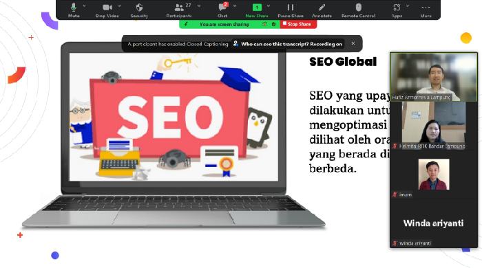 Salah seorang peserta yaitu bapak umar bakti bertanya kepada narasumber aliy hafiz yang sudah tersertifikasi digital marketing BNSP “bagaimana cara dan tips sukses penggunaan seo global untuk umkm lampung”.