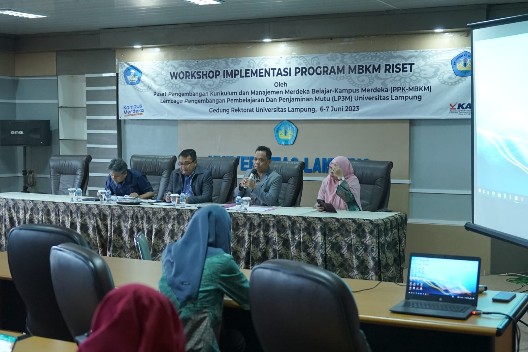 Workshop yang diselenggarakan Pusat Pengembangan Kurikulum dan Manajemen MBKM Lembaga Penelitian dan Pengabdian kepada Masyarakat (LP3M) Unila di ruang sidang lantai empat Rektorat Unila. Kegiatan bertujuan untuk meningkatkan kualitas dan kuantitas penelitian yang melibatkan mahasiswa sebagai peneliti.