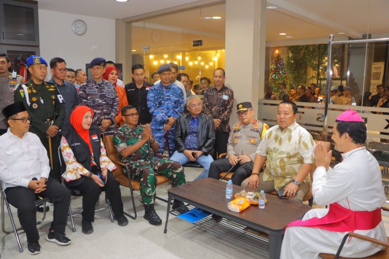 Kapolda Lampung Irjen Pol Helmy Santika bersama gubernur Lampung Arinal Djunaidi dan jajaran forkompinda mengunjungi beberapa geraja di Bandarlampung pada malam natal.