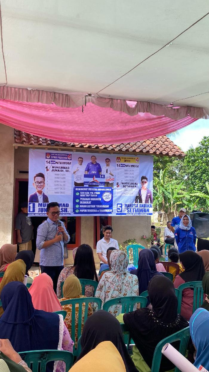 TOPIKINDONESIA.ID – Ketua DPC Partai Demokrat Lampung Selatan Muhammad Junaidi, SH gandeng pedangdut jebolan Dangdut Akademi (DA5) Syahriyadi dan Vokalis Kiki The Potters saat berkampanye di Desa Purwotani, dan Sidodadi Asri, Kecamatan Jati Agung, Lampung Selatan, Senin (22/1/2024).