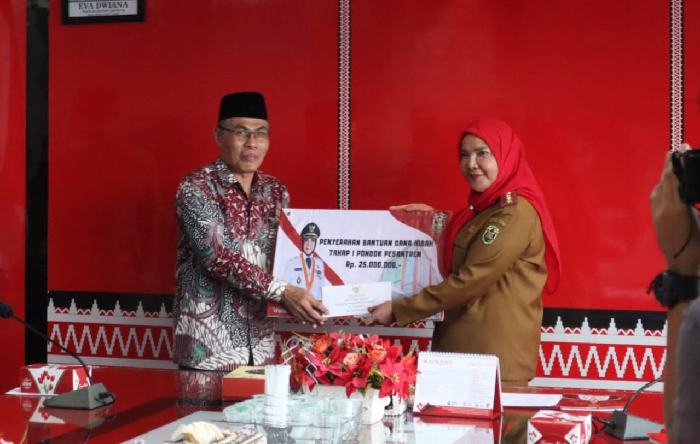 Pemberian bantuan tersebut diberikan langsung oleh Walikota Bandarlampung Hj. Eva Dwiana kepada Pimpinan Ponpes di Ruang Rapat Walikota.
