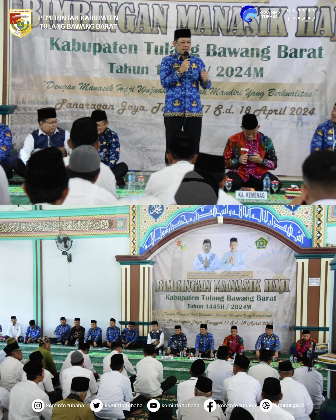 Hadir dalam Bimbingan Manasik Haji Tubaba 1445 H,Assisten Bidang Administrasi Umum M. Rasidi serta Kepala Bagian Kesra Nurkholis Majid dan Kepala Kementerian Agama Tubaba, Ketua MUI Tubaba Serta Tokoh Agama.