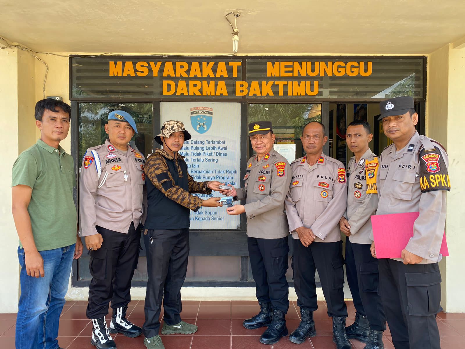 Selanjutnya, oleh Kepala Tiyuh Margo dadi, Senpi Rakitan Laras Pendek, jenis FN tersebut, diserahkan kepada Kapolsek Tumijajar.
