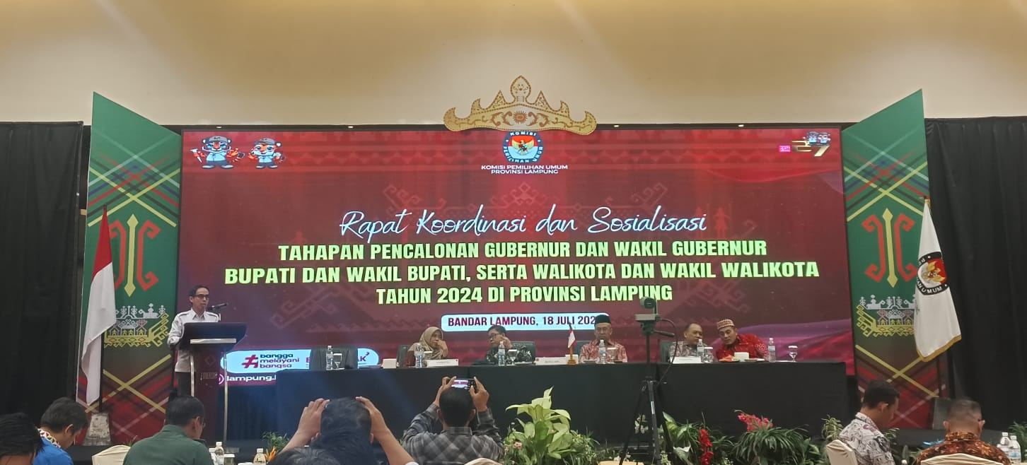 Ini dikatakannya saat mengikuti rapat koordinasi dan sosialisasi tahapan pencalonan gubernur dan wakil gubernur, bupati dan wakil bupati serta walikota dan wakil walikota tahun 2024 di provinsi lampung yang berlangsung di Hotel Emersia, Bandar Lampung (18/7/2024) bersama KPU se – Provinsi Lampung.