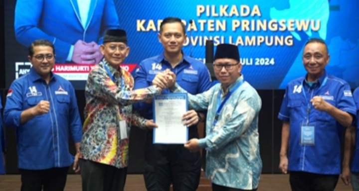 TOPIKINDONESIA.ID – Dewan Pimpinan Pusat (DPP) Partai Demokrat secara resmi memberikan surat rekomendasi kepada H. Adi Erlansyah, S.E., M.M dan H. Hisbullah Huda, S.H., M.M sebagai Calon Bupati dan Calon Wakil Bupati pada Pemilihan Bupati (Pilbup) Kabupaten Pringsewu 2024.