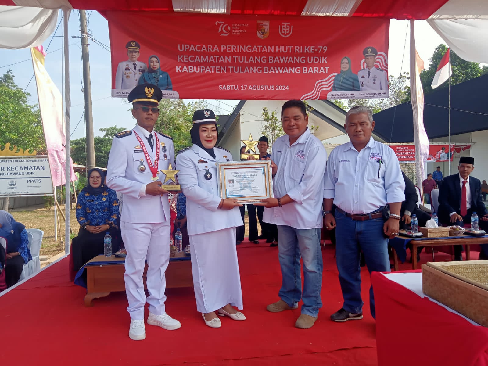 Sepuluh penghargaan diserahkan langsung oleh M.Firsada Pj.Bupati Tulangbawang Barat usai upacara peringatan hari kemerdekaan Republik Indonesia tingkat Kabupaten Tulangbawang Barat di lapangan kantor Pemkab Tubaba pada Sabtu (17/08/2024).