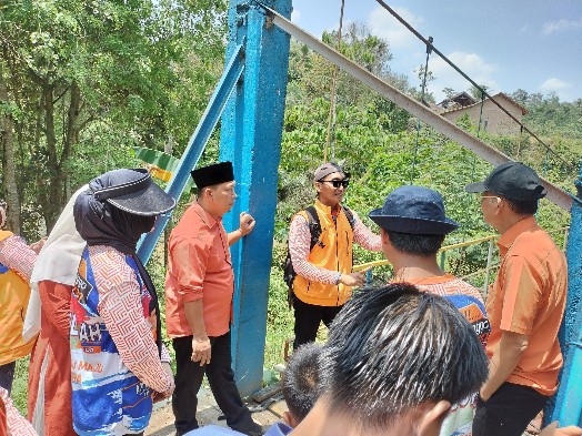 Perjalanan menyusuri dusun kemudian dilanjutkan mengecek jembatan gantung yang berada di Sinargunung. Dimana jembatan tersebut menjadi penghubung ke desa Bumi Arum Kecamatan Pringsewu.
