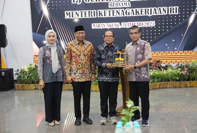 TOPIKINDONESIA.ID – Pj. Gubernur Lampung Samsudin menggelar ramah tamah dengan Menteri Ketenagakerjaan (Menaker) Republik Indonesia Yassierli yang dihadiri Gubernur Lampung terpilih Rahmat Mirzani Djausal dan Wakil Gubernur Lampung terpilih Jihan Nurlela, di Aula Mahan Agung, Rumah Dinas Gubernur, Bandarlampung, Selasa (21/1/2025).
