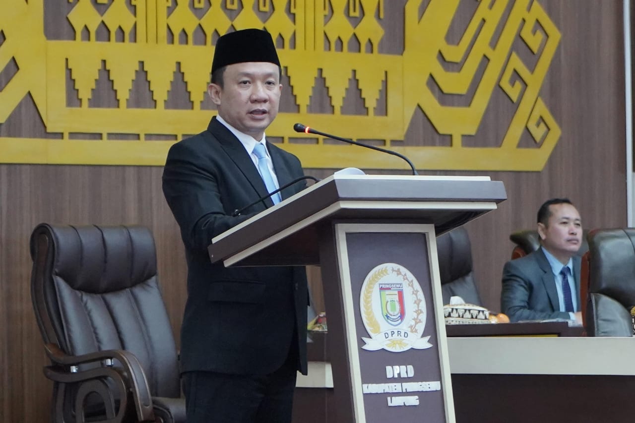 Ucapan disampaikan pada Rapat Paripurna pengumuman penetapan Bupati dan Wakil Bupati Pringsewu Terpilih 2025-2030 di gedung DPRD setempat, Senin (10/2/2025).