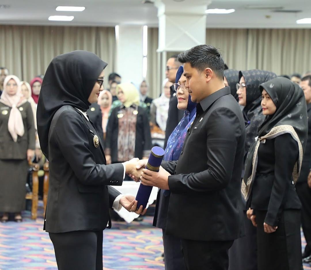 Pengambilan sumpah, janji jabatan itu dilakukan oleh Wakil Gubernur (Wagub) Lampung, Jihan Nurlela di Lantai 3 Balai Keratun, Kantor Gubernur Lampung, Jumat (2/5/2025).