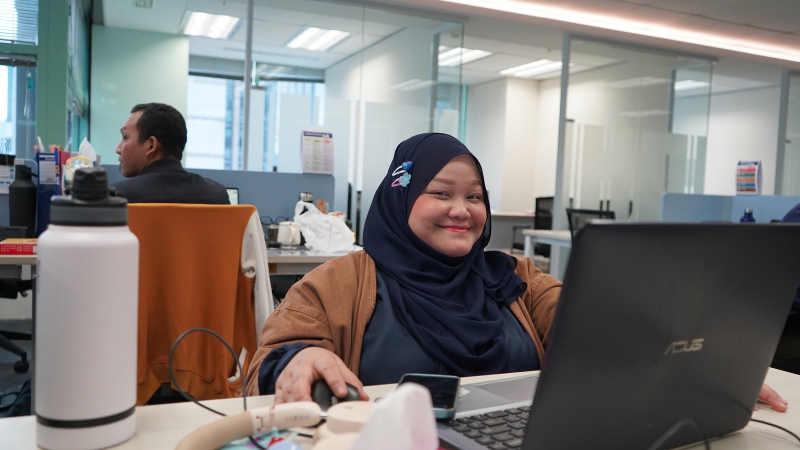Afifah tak kesulitan menemukan kantor yang akan menjadi tempatnya menemukan identitas dan mengimplementasikan kompetensinya. Beberapa karyawan lain langsung menyambut dengan hangat dan mengarahkan setelah beberapa saat berkenalan. Sesuai job desk yang diterima, gadis berhijab ini akan bergabung dengan Divisi Sekretariat Perusahaan Head Office PTPN I.
