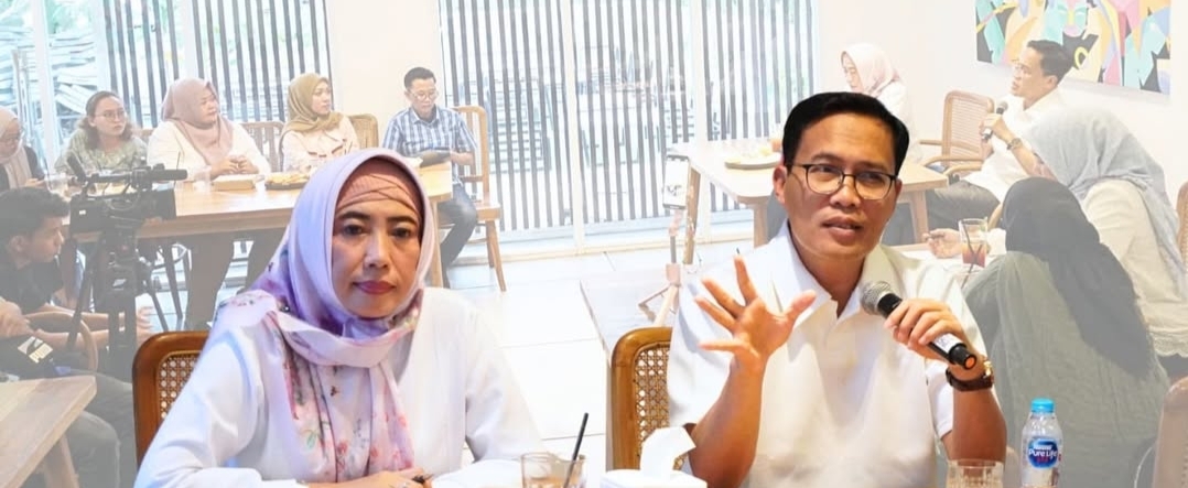Kepala Perwakilan BKKBN Provinsi Lampung Soetriningsih (kiri) didampingi Sekretaris Ni Gusti Putu Meiridha (kanan) saat berdiskusi bersama awak media, di Bandar Lampung, Kamis (28/8/2025) sore. Foto: Taufik Rohman