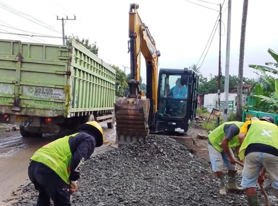 Kegiatan mencakup penimbunan lubang, pengerukan saluran air, dan pembersihan bahu jalan guna mencegah genangan serta kerusakan lanjutan.