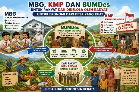 Kunci keberhasilan terletak pada sinergi. Bayangkan sebuah desa di mana bahan pangan ditanam oleh petani lokal, dihimpun dan didistribusikan oleh KMP, dikelola secara profesional oleh BUMDes, lalu digunakan untuk mendukung program MBG bagi masyarakat setempat. Sebuah siklus ekonomi yang berputar di desa, oleh rakyat, dan kembali untuk kesejahteraan rakyat.
