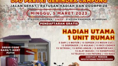 TOPIKINDONESIA.ID – Dalam rangka menyambut HUT ke-15 Partai Gerindra Lampung akan menggelar jalan sehat yang…